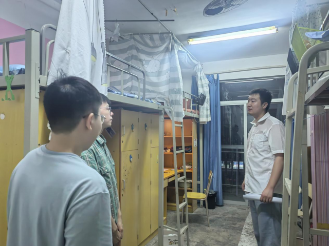 为切实了解研究生新生的住宿和生活状况,助力新生更好地适应研究生生活,8月31日晚20时,8827太阳集团党委书记鲁辉、副书记蔡文强、学工办主任谢巧燕、研究生学工办负责人蔡超以及研究生新生班级的辅导员、班主任们一同深入研究生新生寝室,对同学们进行关怀慰问。
