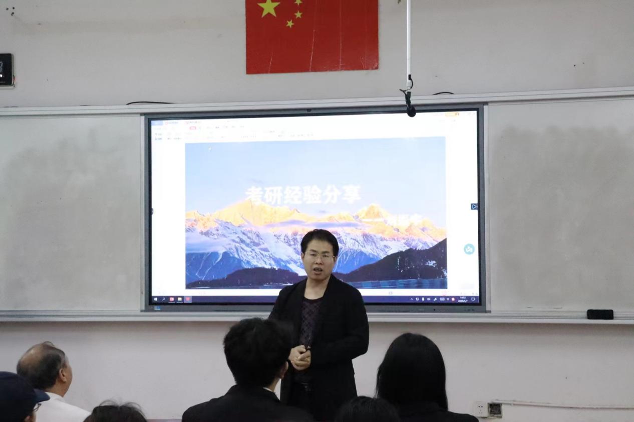 分享会伊始,谢巧燕老师介绍了学院考研的优良传统和考研情况,对2024届考取研究生的同学表示了热烈的祝贺,并对即将参加2025年考研的同学予以鼓励,围绕考研的意义、考研的准备等给考研同学提出了几点建议,激励准备考研的同学们志存高远、奋发有为。同时向参加今天分享会的五位同学表示感谢,并预祝本次交流会取得圆满成功。