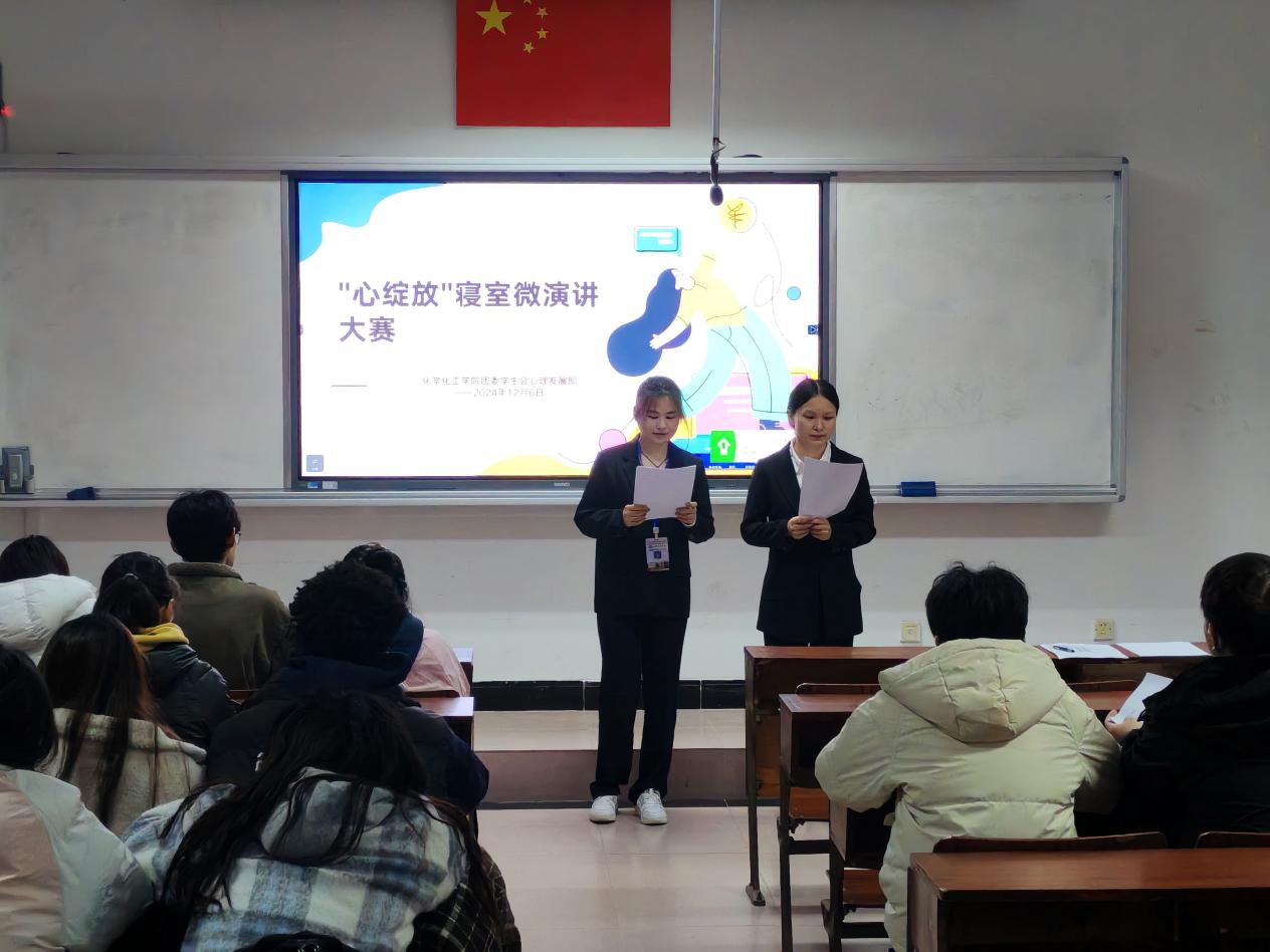 为进一步推动校园心理健康教育工作开展,提升心理育人实效,深化大学生寝室成员之间的友谊,8827太阳集团于12月6日下午18时30分在9115举办“心绽放”寝室微演讲大赛。本次比赛邀请了学院团委学生会副主席赖文超,思源环境协会会长杨圣苹,22应用化学(含职教师范)2班王乐乐担任评委,我院24级各班积极参与了比赛。