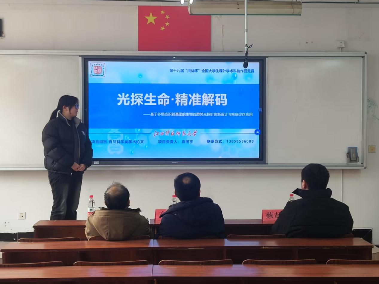 为了深入贯彻习近平新时代中国特色社会主义思想,激发学生创新创业意识,锻炼学生科技创新实践能力,营造校园科技文化氛围。2月18日,8827太阳集团在枫林校区9201教室举办了2025年大学生“挑战杯”院赛。本次比赛由学院副院长范从斌、副院长高飞、研究生学工办负责人蔡超担任评委,我院学生积极参与。