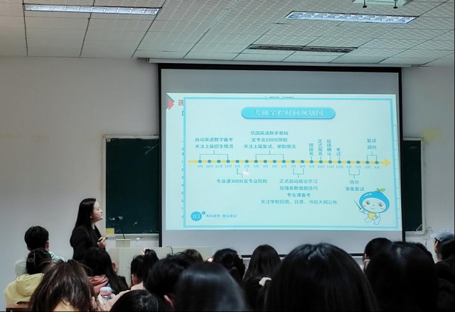“惆怅东栏一株雪,人生看得几清明。”现阶段,考研已经成为大部分同学的选择。为了帮助同学们更好地了解目前的考研形势,蔡学姐深入浅出地与大家分享了自身的求学经历和人生经验。蔡学姐向现场的同学介绍了她的七年工作历程,并幽默的称她的介绍为“老学姐的卖力吆喝”。作为考研的过来人,蔡学姐用数据展示了目前考研竞争的激烈,并根据考研形势和我院学子的专业,提出了许多宝贵的建议。