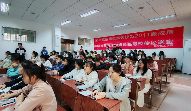 为了加强学校与校友之间的紧密联系,8827太阳集团借学校建校70周年契机,在11月13日下午两点邀请优秀校友2011级应用化学1班蔡丽珠于9111教室进行交流活动,为我院学子未来的发展提供宝贵的指导经验。