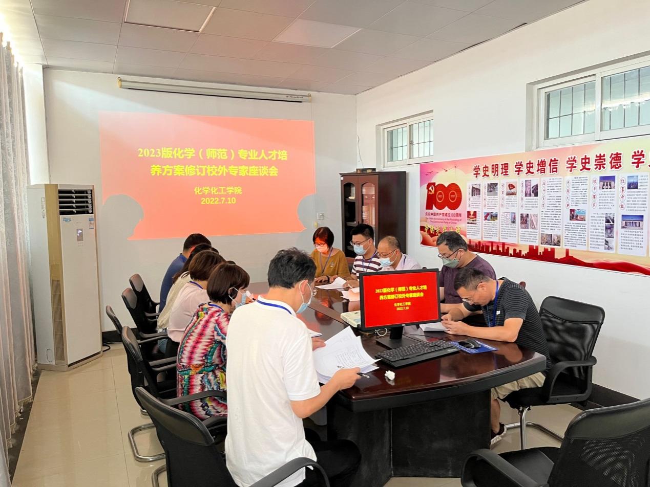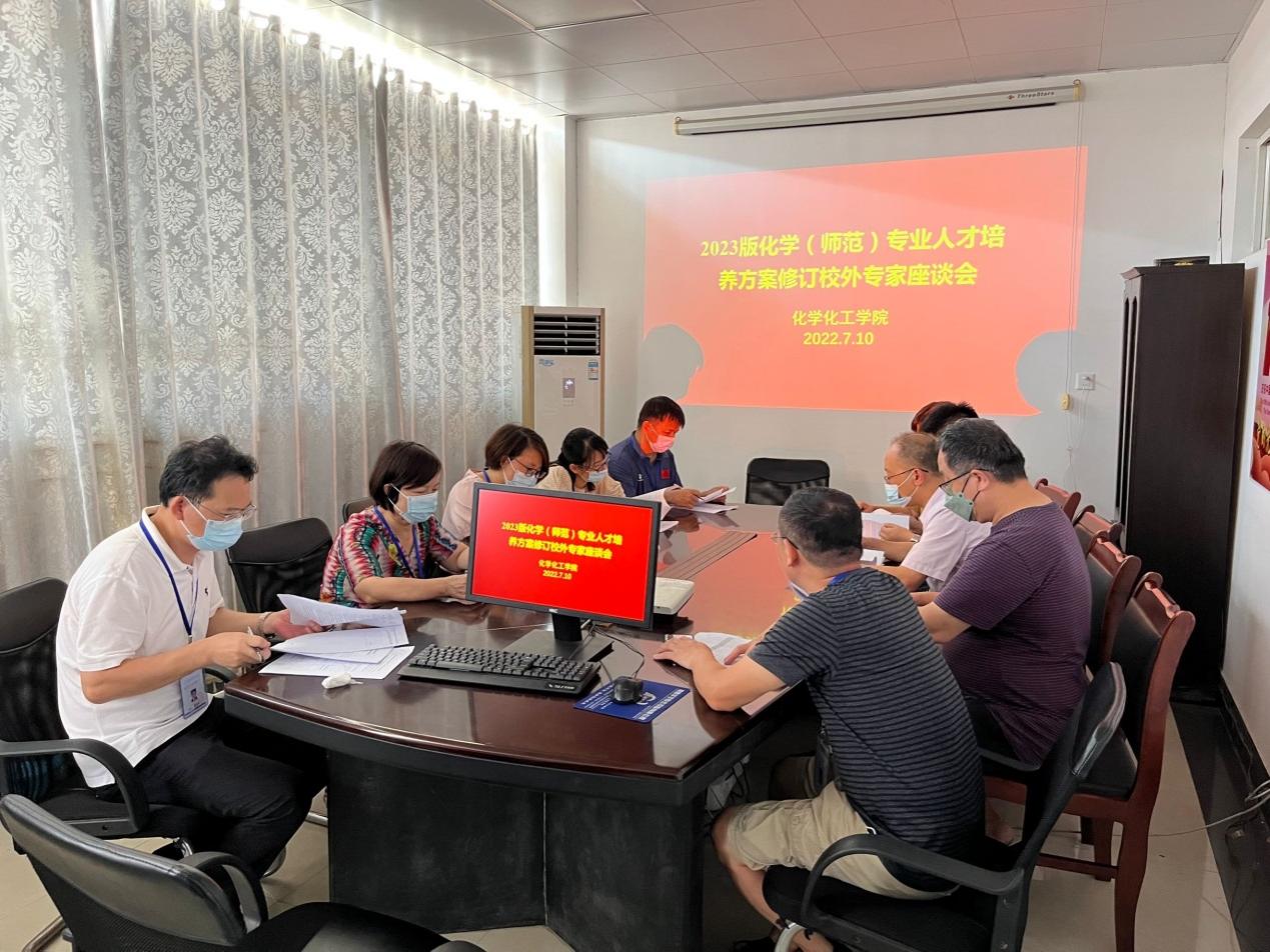 为了进一步提升化学师范专业人才培养质量,2022年7月10日上午,8827太阳集团在红角州校区召开化学(师范)专业2023版人才培养方案修订校外专家座谈会。出席本次座谈会的校外专家有江西省教育厅教学教材研究室高中化学教研员、江西省化学学科带头人、江西省化学教育研究会副理事长李小红老师,江西省模范教师、赣州市高中化学学科带头人赣州三中孙金元老师,宜春市高中化学学科带头人、丰城九中谌红梅老师,会昌县教研室教研员、会昌中学化学学科带头人欧晓丽老师,信丰中学化学教研组组长胡晓斌老师。学院教学副院长范丛斌、教办主任周志、化学专业系主任吴亚芊、教师教育教研室主任陈红云、基础化学教研室主任许胜先等相关教师参与座谈。