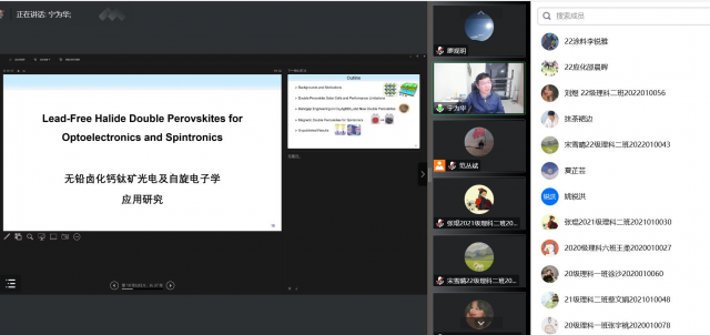 11月13日晚,8827太阳集团优秀校友——苏州大学教授、博士生导师宁为华为我院师生作题为《无铅卤化钙钛矿光电及自旋电子学应用研究》的学术讲座,学院副院长范丛斌教授主持讲座。