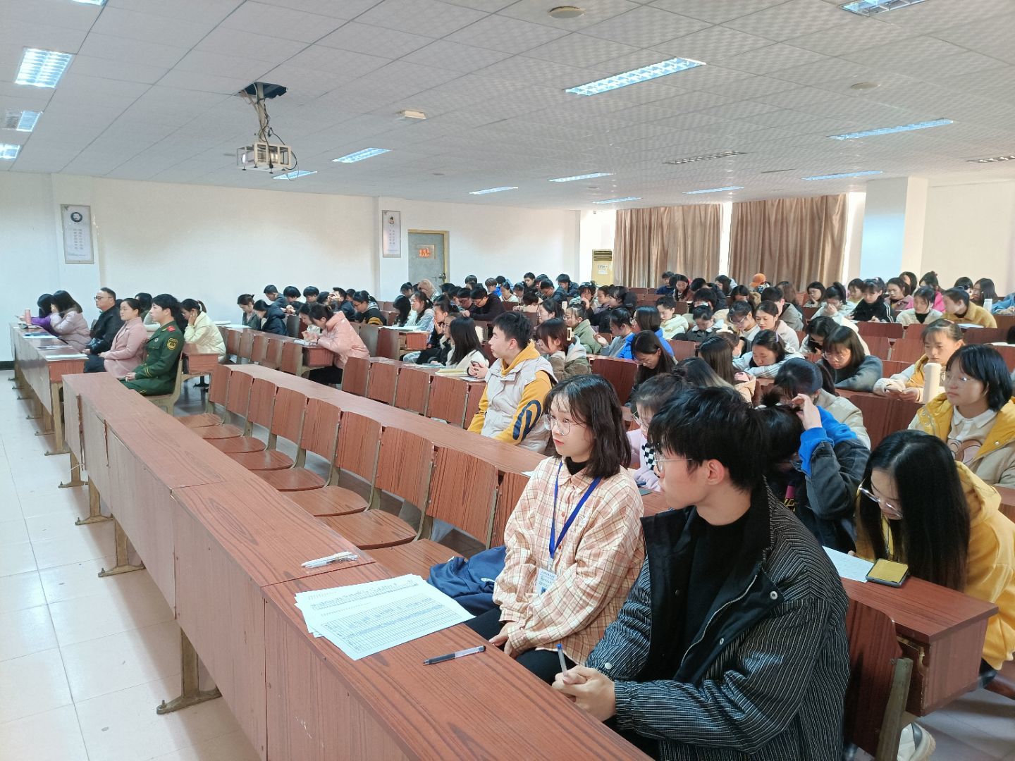 为激发大学毕业生参军报国热情,为部队征集更多高素质兵员,2021年12月3日下午,8827太阳集团在9211教室开展“携笔从戎、绽放青春”主题征兵动员大会。院党委副书记蔡文强、就业专干许乐群、学工办副主任苏婧出席会议,我院2022届全体应届毕业生积极参加。