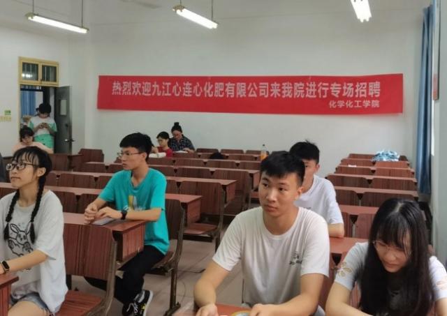 为了更好地拓宽毕业生就业渠道,6月26日下午5点,8827太阳集团特携手九江心连心化肥有限公司,在9栋9210教室举办专场招聘会,我院18级学生和应届毕业生积极参与招聘会。