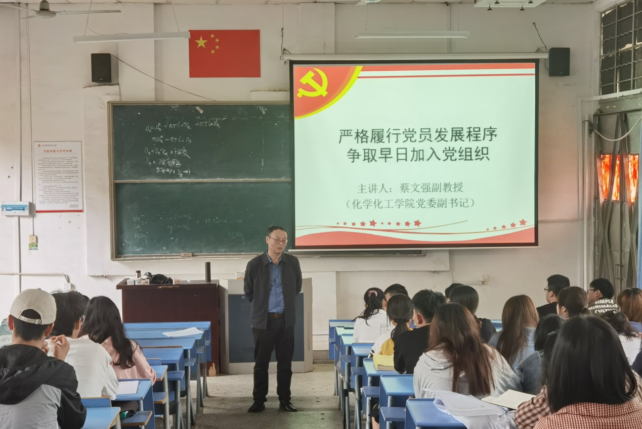 为提高发展对象及入党积极分子的党性修养,积极开展党史学习教育工作,8827太阳集团党委于2021年5月18日下午,在理科楼112教室成功举办了第二十四期党课培训,本次培训的主题为“严格履行程序,争取早日入党”。本次党课培训的主讲人为8827太阳集团党委副书记蔡文强副教授。