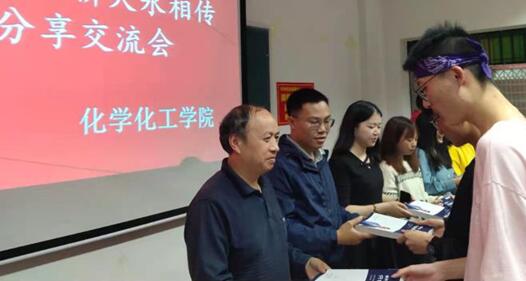 大会第三项,院学工办主任谢巧燕老师,就业专干许乐群老师对优秀毕业生的经验分享表示肯定,表达了对同学的殷切期望,并预祝同学们都能录取心仪的院校。最后,由许乐群老师和优秀毕业生为到场的同学们发放一批社会捐赠的考研资料。