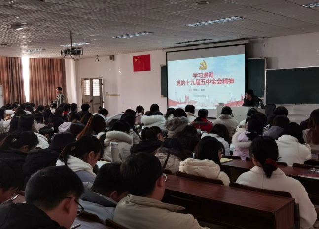 为了更好地坚定大学生的理想信念,充分贯彻落实党的十九届五中全会精神,根据学校部署,我院于12月22日下午2点在九栋综合教学楼9311教室举行了“学习党的十九届五中全会精神”的主题宣讲活动。本次宣讲由校科研处处长刘刚教授主讲,我院全体大三学生参加。