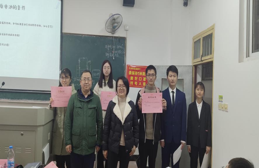 本次比赛从教学内容设计、重难点把握、教法学法、板书设计等方面对选手进行综合考核。通过初赛的同学各尽其能,用精心准备的教案和课件讲述了一节节生动形象的化学课,赢得了评委和观众的阵阵掌声。最终,经评委打分选出了表现优异的同学,分别是一等奖:陈小美。二等奖:刘佳敏。三等奖:路贝佳。最佳说课奖:查建程。
