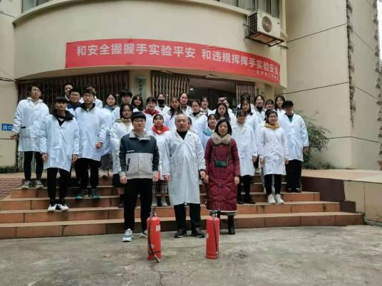 首先由林聪老师在化学楼204实验室现场讲解实验室安全知识,他从五个方面:水、火、试剂和废液安全,向在场学生讲述基本的操作安全。随后杨豫平老师向大家介绍实验仪器操作安全问题,并引导学生进行了一次实验室消防逃生模拟演练。最后由徐建国老师讲解灭火器的种类,使用范围和方法并让学生实际操作灭火器。