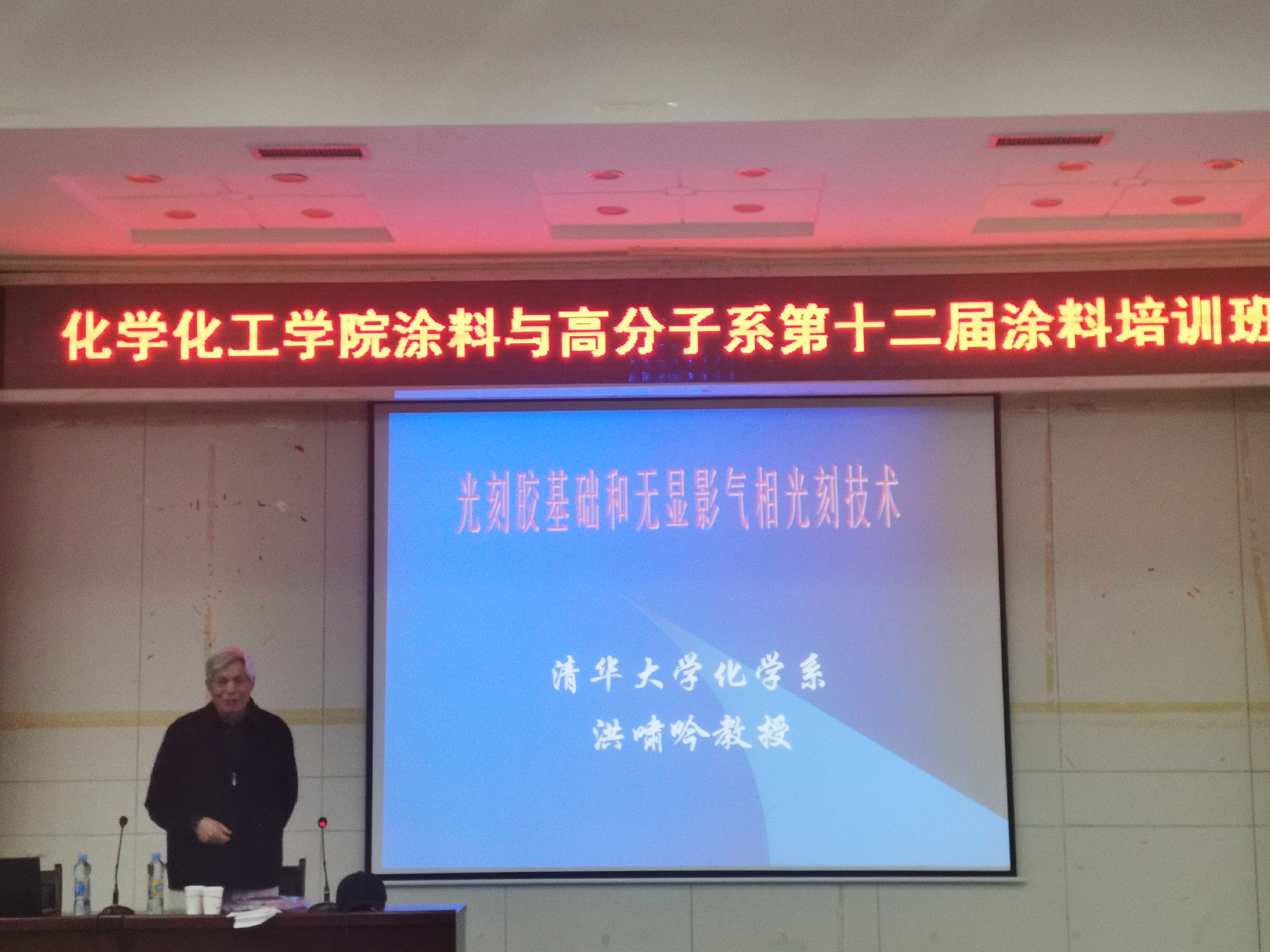2019年12月17日下午,国内涂料行业著名专家、清华大学洪啸吟教授应邀来校参加涂料与高分子系第十二届涂料培训班,在校学术报告厅给涂料与高分子系全体师生作了《光刻与光刻胶》的专题讲座,讲座由申亮院长主持。