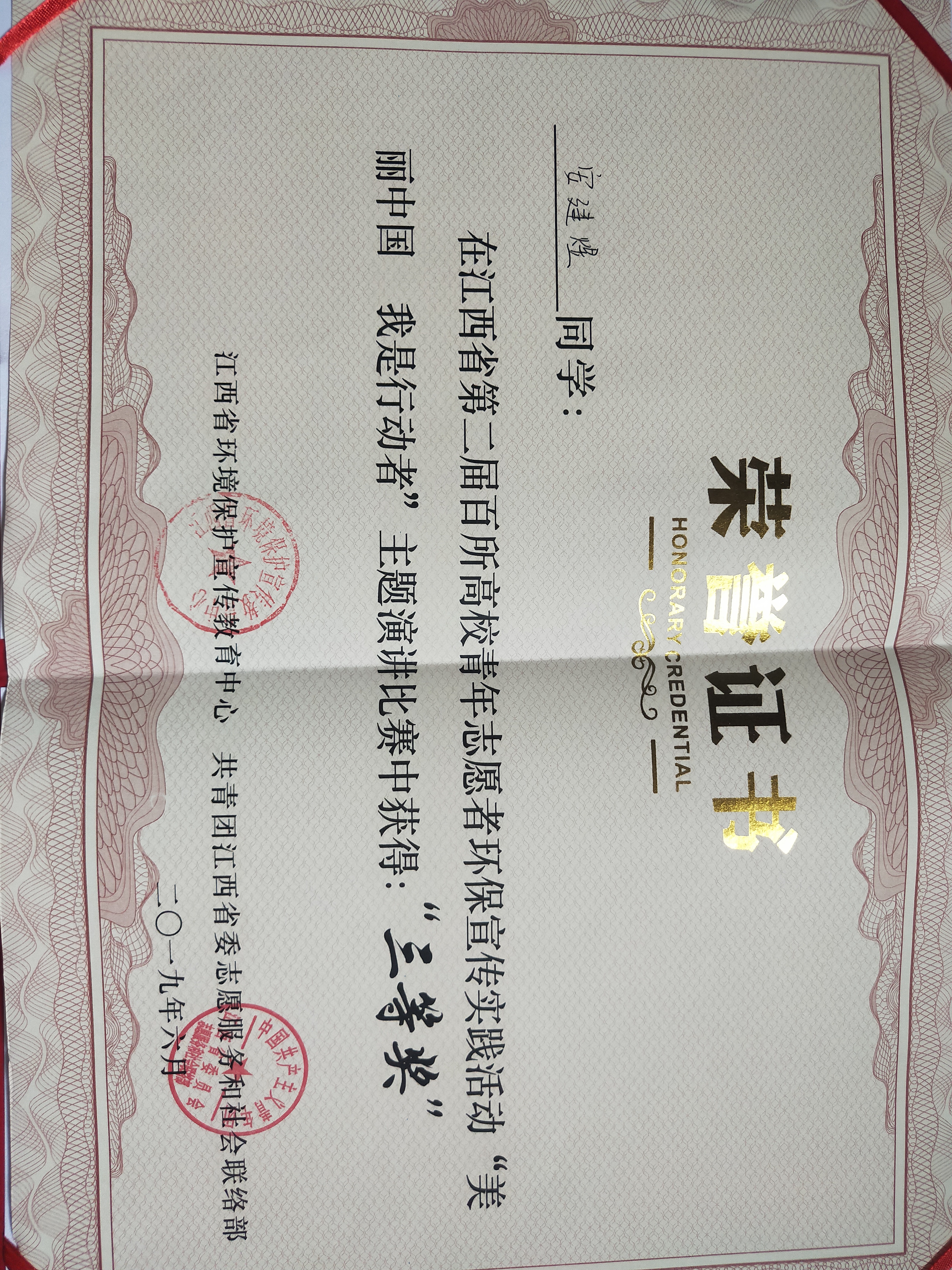 在百所高校环保社团代表演讲比赛中,我校代表安建煜同学在台上台风稳健,表达内容逻辑清晰,为各位领导和在场各高校同学带来了一场精彩的演讲,最终安建煜同学在百所高校代表中突破重围力夺三等奖。在比赛中,我校更是凭借《让中国更美丽》这条短视频让领导们赞不绝口。