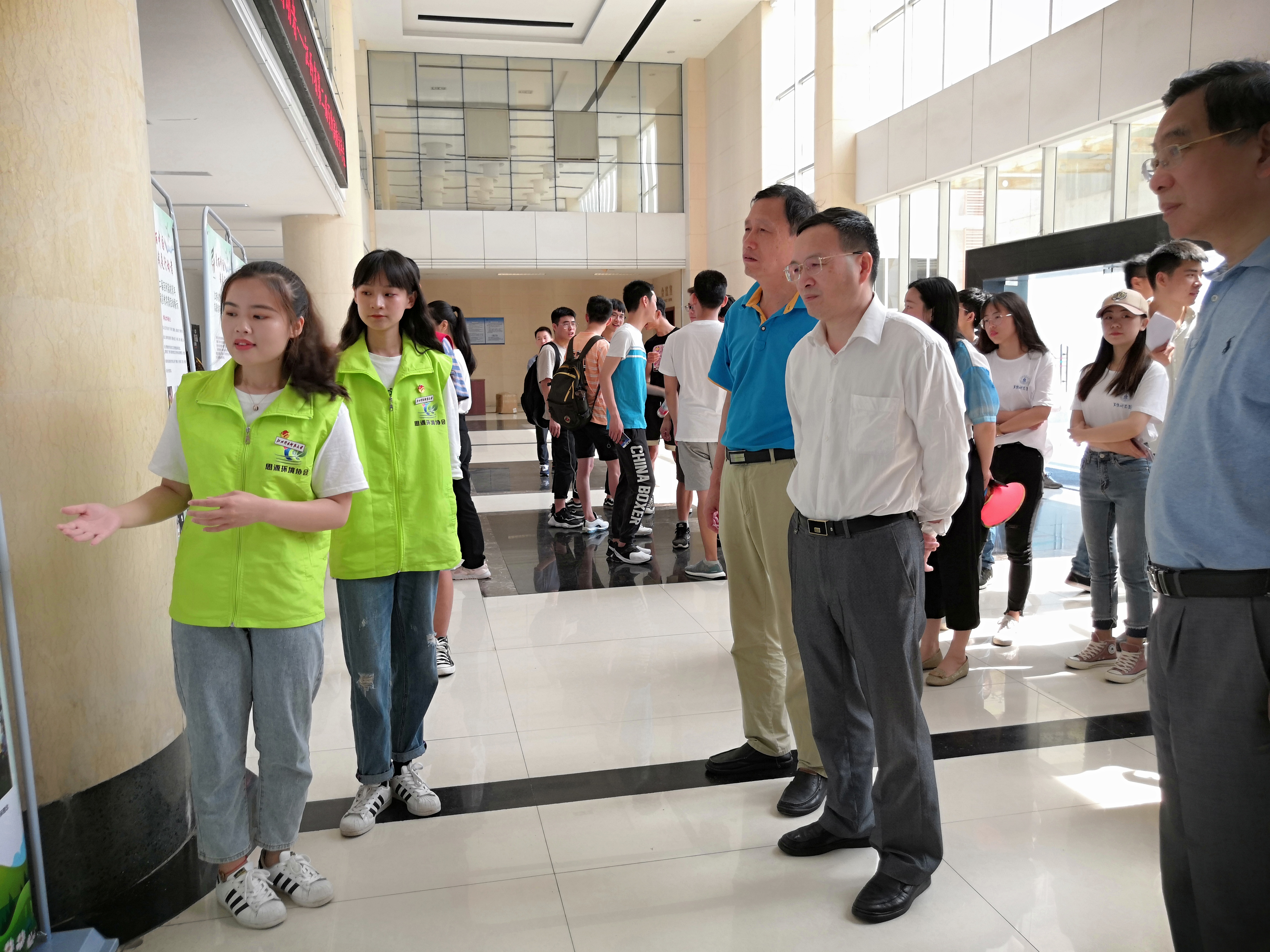 在领导来到我校实践成果展板时,思源协会代表讲解员汤曼以丰富的展板内容和流利的口才深得领导赞许和鼓励,这将极大程度激发我们同学对于环境保护事业的自发性和积极性。