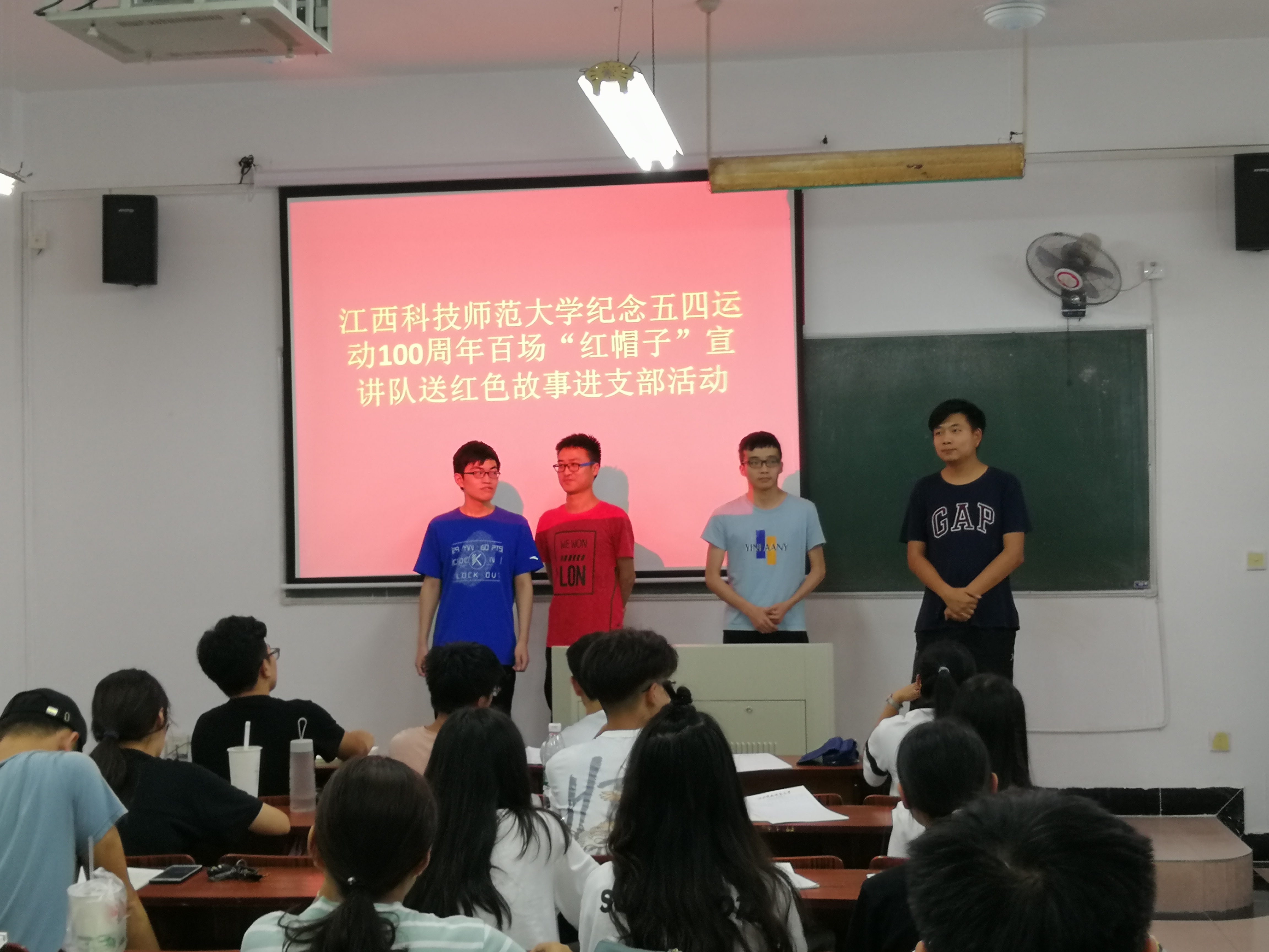 为了弘扬社会主义核心价值观,2019年6月16号晚上七点,校“红帽子”宣讲队走进8827太阳集团大一各班级开展巡演活动。