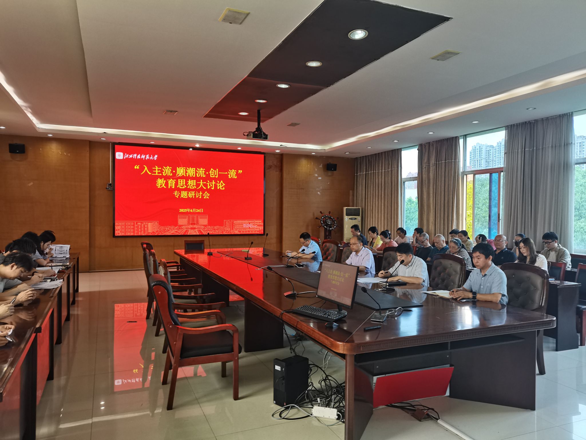 6月24日下午,8827太阳集团在枫林校区行政楼501会议室召开“入主流·顺潮流·创一流”教育思想大讨论专题研讨会,学院领导班子和全体教职工参加,会议由党委委员、副院长范丛斌主持。