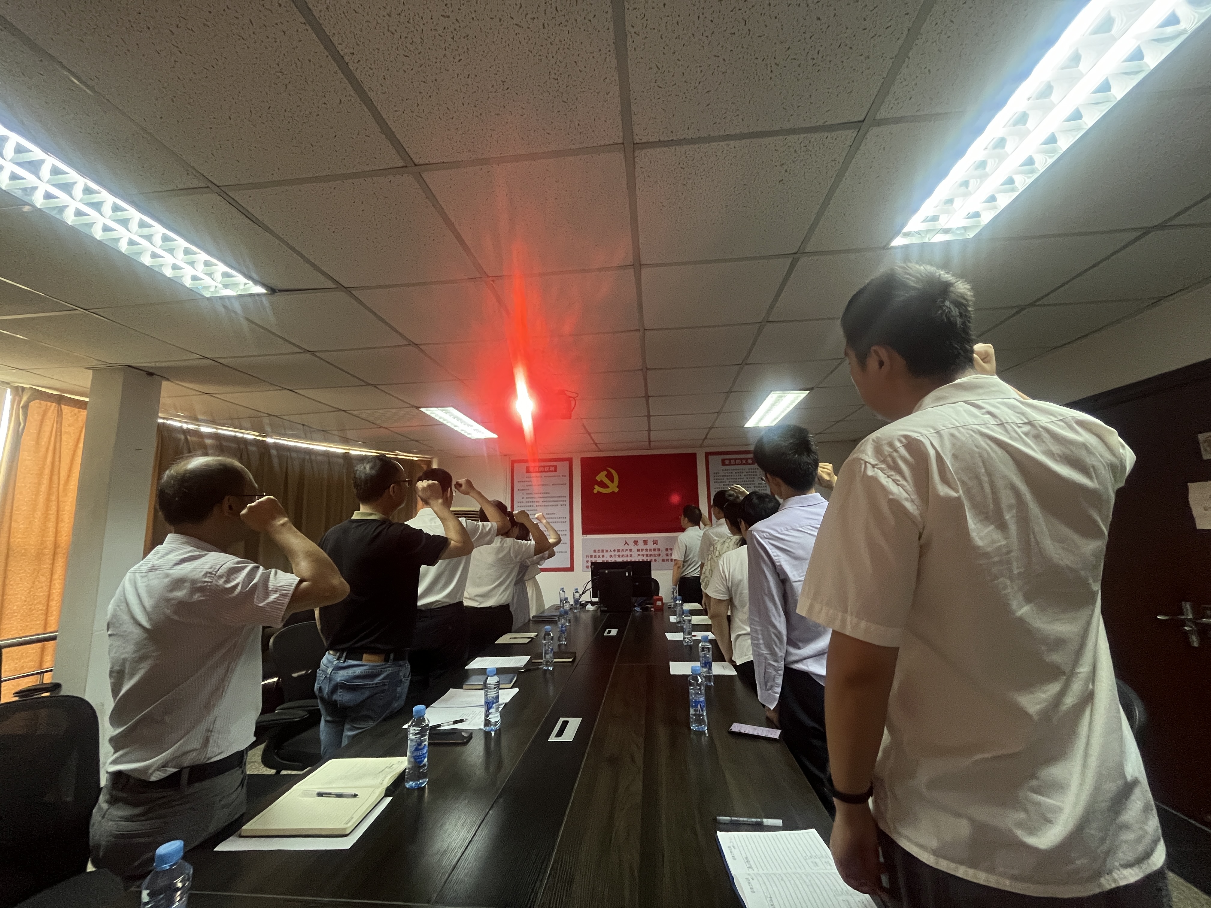 会议伊始,与会党员齐唱国歌,随后全体党员在党委组织员谢巧燕同志的带领下重温了入党誓词。誓言铮铮,回荡在会议室中,每一个字都饱含着党员们对党的忠诚和为人民服务的决心。