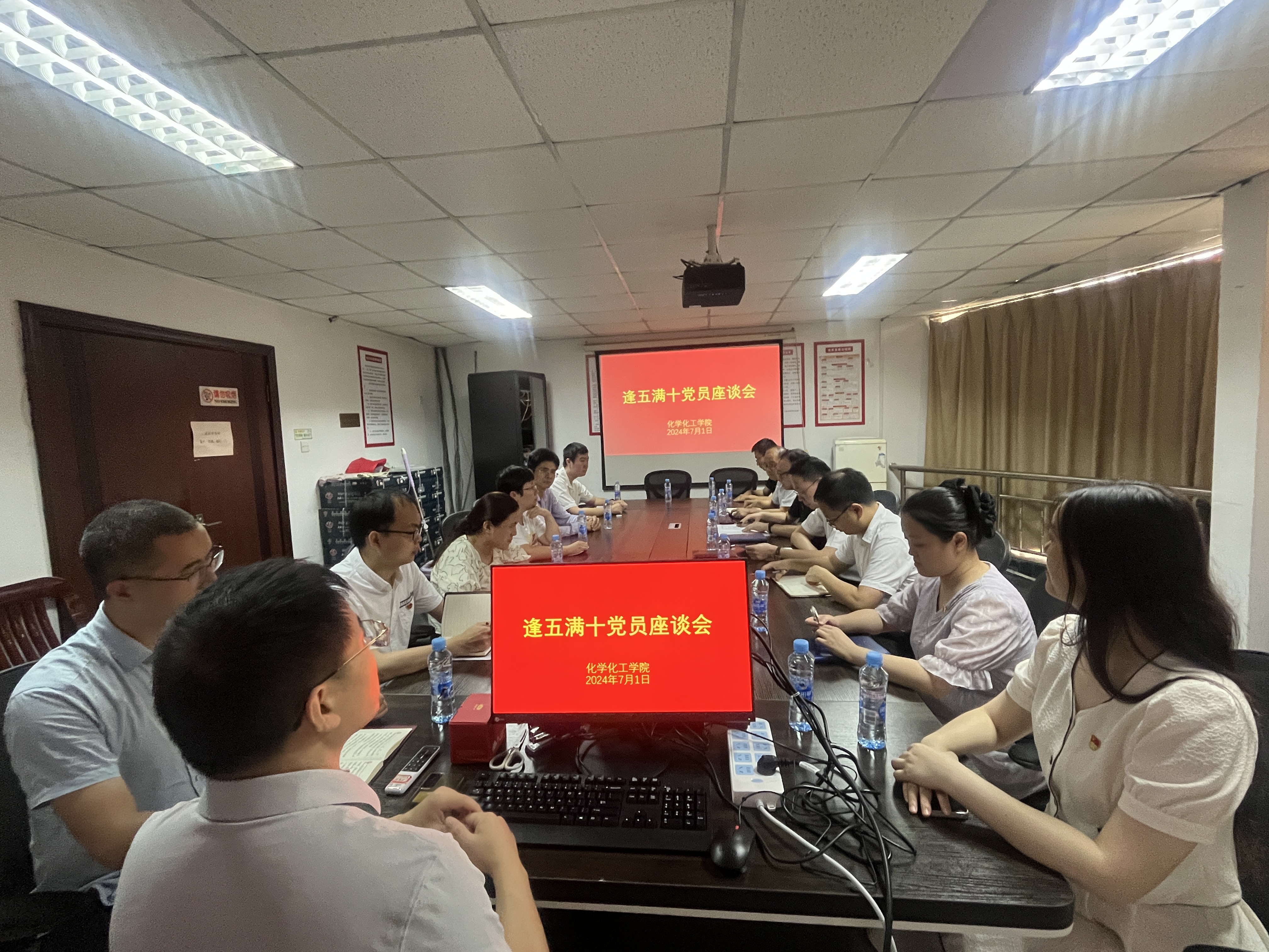 为庆祝中国共产党成立103周年,7月1日上午,8827太阳集团在行政楼307党员活动室召开入党“逢五满十”党员代表座谈会。学院党委书记鲁辉,副院长范丛斌、高飞,有机所副所长曹伴鹏出席座谈会。会议由学院党委副书记蔡文强主持。