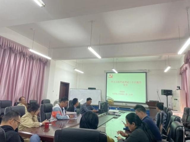 首先,各支部书记带领大家学习了党的二十大报告全文。党的二十大报告系统地总结了过去五年在以习近平同志为核心的党中央的正确领导下,带领全党全国各族人民取得的辉煌成就,同时提出了新时代中国共产党的历史使命就是团结带领全国各族人民全面建成社会主义现代化强国,实现第二个百年奋斗目标,以中国式现代化全面推进中华民族伟大复兴。紧接着教工党员舒金兵、李卉、陈帅华、陈兵、赵丰、李志坚和学生党员李继城、张文远等,结合自身的工作职责和学习,交流了自己学习党的二十大精神的体会。会议最后,大家集体观看了CCTV13套专题节目《党的二十大时光》。