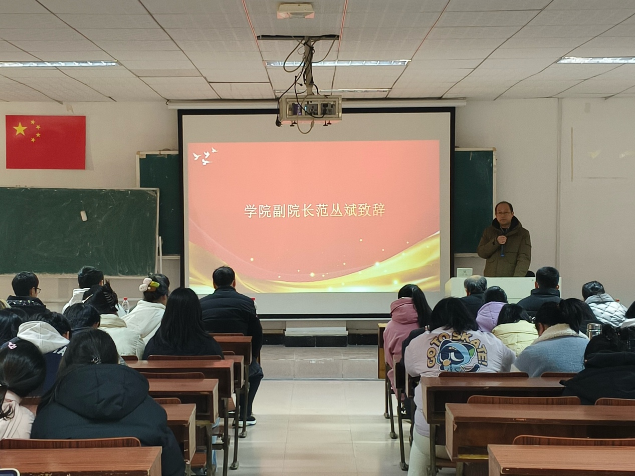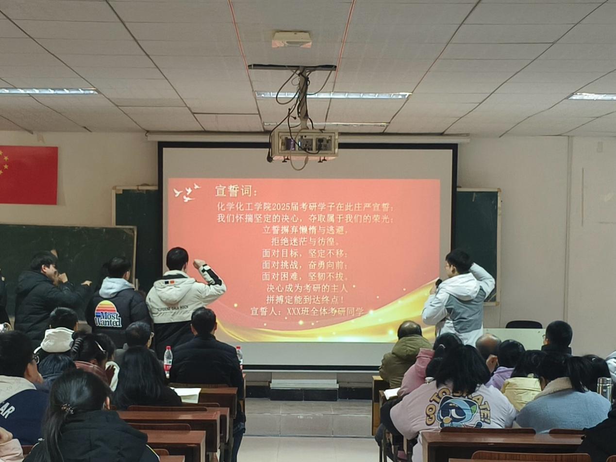 为提振2025届考研学生备考信心,激发考研斗志,鼓舞考研士气,12月19日14时,8827太阳集团于9211教室开展“以梦为马,考研必胜”考研誓师大会。院党委副书记蔡文强,副院长范丛斌,学工办主任谢巧燕,学工办负责人车欣敏,研究生学工办负责人蔡超,学工办就业专干章琳,学工办资助专干许乐群,21级毕业班班主任柳引、陈山虎、孔祥娟、刘宏亮、李志坚、卢林等老师出席,2025届毕业班全体学生参与活动。