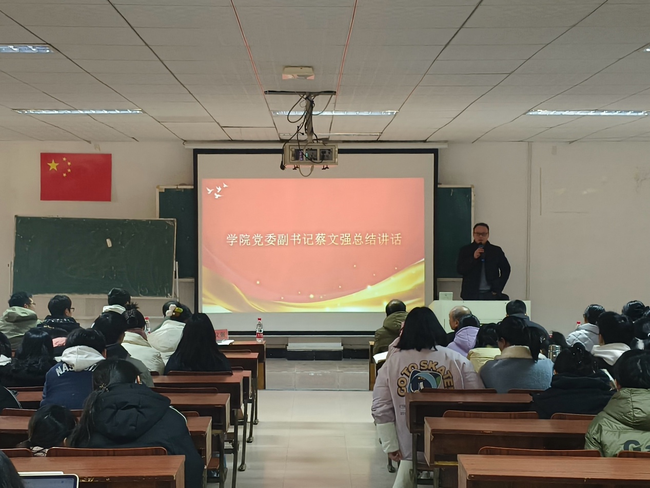 大会最后,学院党委副书记蔡文强对大会进行了总结。他希望同学们明确目标,持之以恒;合理规划,高效备考;调整心态,保持乐观,从容应考。同时,蔡文强书记鼓励同学们要珍惜时光,不负韶华,以更加饱满的热情和更加坚定的步伐迎接考研的挑战。
