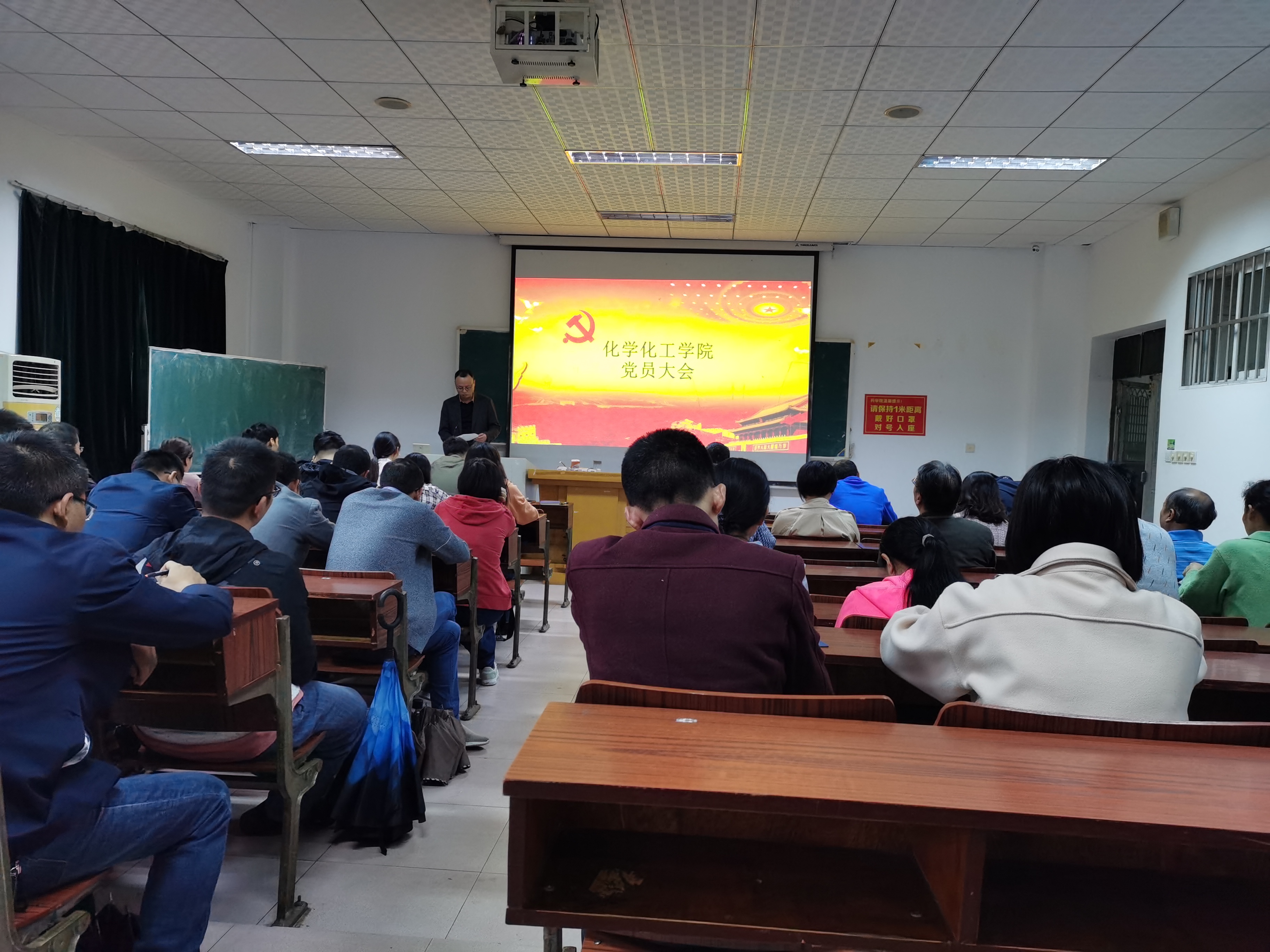为深入贯彻落实习近平总书记关于党的建设的重要思想论述,全面落实中央、校党委有关加强党的建设相关会议文件精神并持续巩固我院“不忘初心、牢记使命”主题教育成果,积极推进主题教育后续工作有利开展,不断提升学院党建工作水平。9月22日下午我院于九栋9114教室召开了全体党员大会,本次大会由院党委副书记蔡文强同志主持,我院全体党员参加了本次大会。