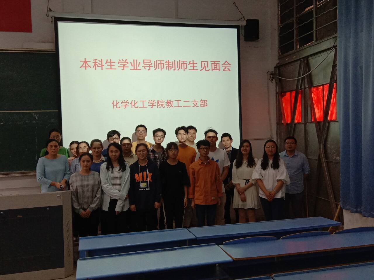 按照学校“不忘初心、牢记使命”主题教育的要求,2019年10月23日下午,我院教工二支部在理科楼112教室与18应用化学2班(含职教师范)对接见面会,会议由宣传委员郑春红老师主持,教工二支部全体党员参加了见面会。