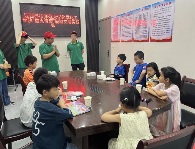 为呵护少儿平安健康成长,“星火传夏”暑期文明实践队深入进贤县民和镇解放街社区党群服务中心,开展“关爱祖国花 守护少年心”主题实践活动。活动中,队员们与小朋友们亲切互动,通过“小球进洞”和“颠乒乓球”两个热身小游戏迅速拉近了彼此之间的距离。随后,诗词抢答环节和粘土小游戏则将活动推向了高潮。