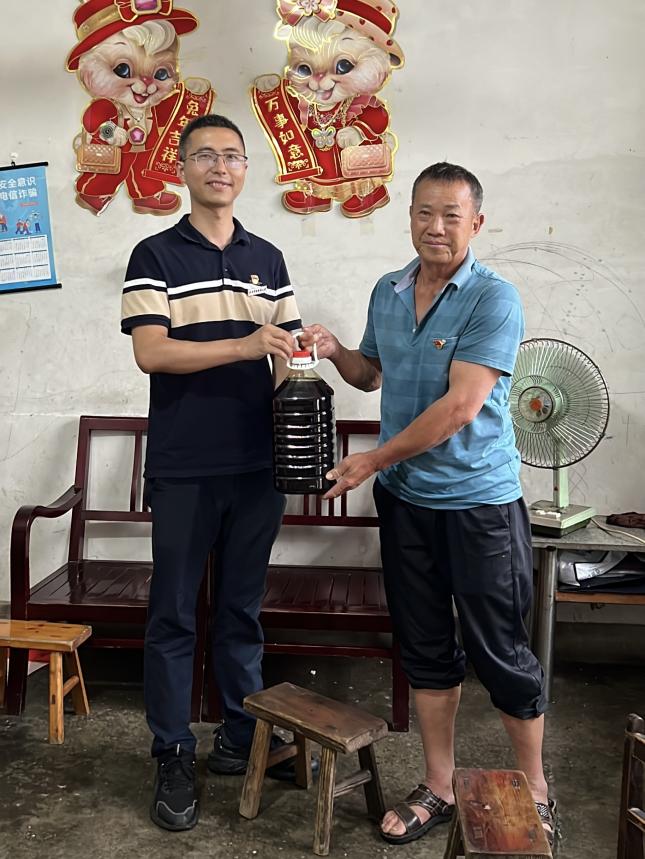 为庆祝建党102周年,传承红色精神,寻访红色记忆,7月1日,8827太阳集团“夏日筑梦”暑期“三下乡”社会实践队前往庐山市海会镇彭山村拜访慰问老党员周官记,了解老党员背后的故事,将党史教育融入实践活动中。