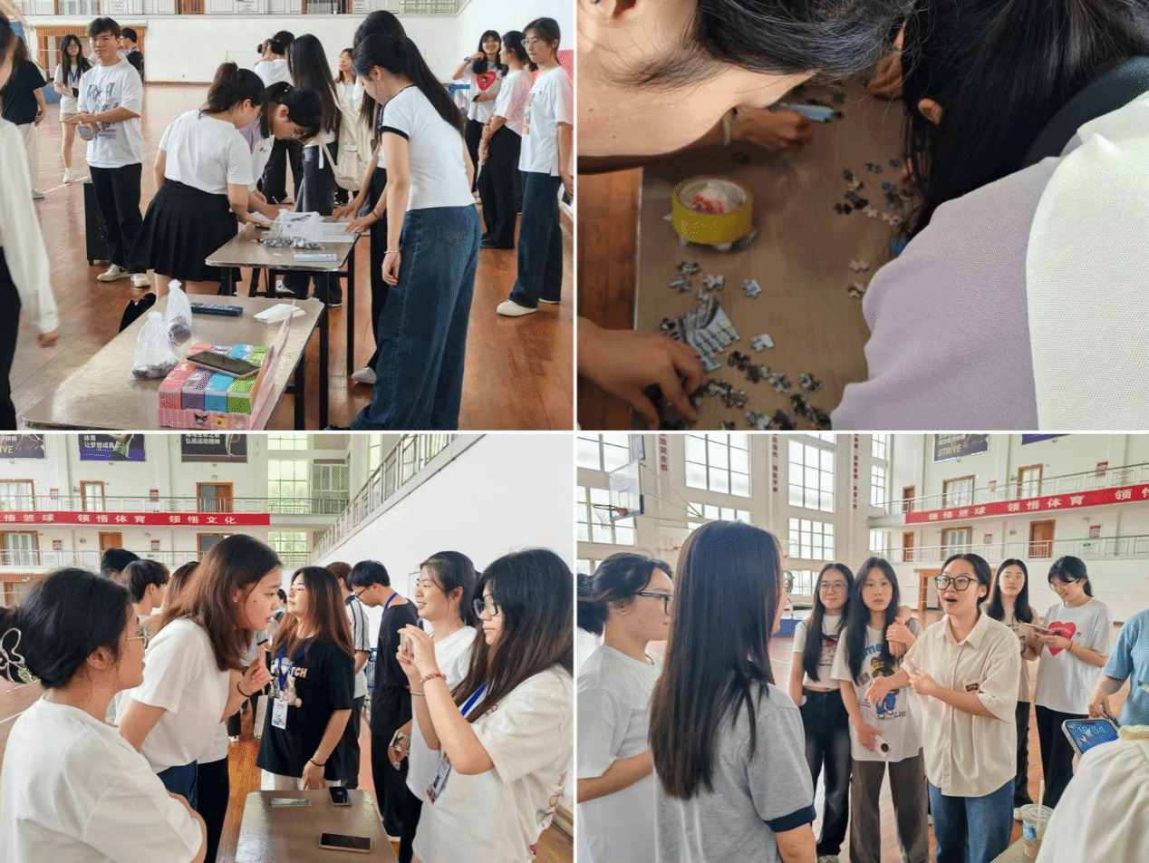 活动核心环节“青春回忆·职业探索”沉浸式游戏点燃了现场互动热情。在“校园照片拼图”中,同学们分组协作,将散落的校园地标照片复原,在重温校园点滴的同时,回答相关校史文化问题,加深了对母校的归属感。“职业猜猜猜”环节则妙趣横生,同学们通过肢体语言或简短描述,竞猜不同职业信息卡片,在欢声笑语中拓宽了职业认知视野,启发了对未来生涯的思考。紧张激烈的比拼后,优胜小组获得了纪念奖品。