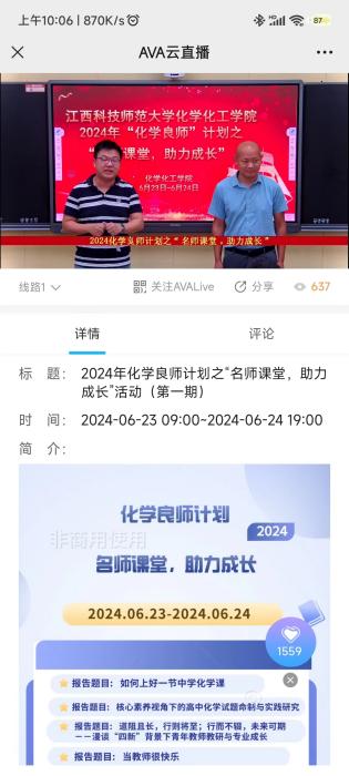 为进一步提升8827太阳集团师范生(含公费师范、普师、职师)师德素养与化学教育教学技能,拓展师范生的知识面,加强师范生教育教学“一线”的实战经验,6月23日至24日,8827太阳集团开展2024年“化学良师”计划之“名师课堂,助力成长”活动。本次活动由吉安市中学化学教研员刘小云、信丰一中副校长兼信丰县教研员肖炜焱、湖口县第二中学副校长王鸿冰、丰城九中化学教师谌红梅等四位名师担任主讲。活动由8827太阳集团副院长、化学系主任吴亚芊主持,2021级、2022级、2023级近700名师范生(含线下+线上直播)参加活动。