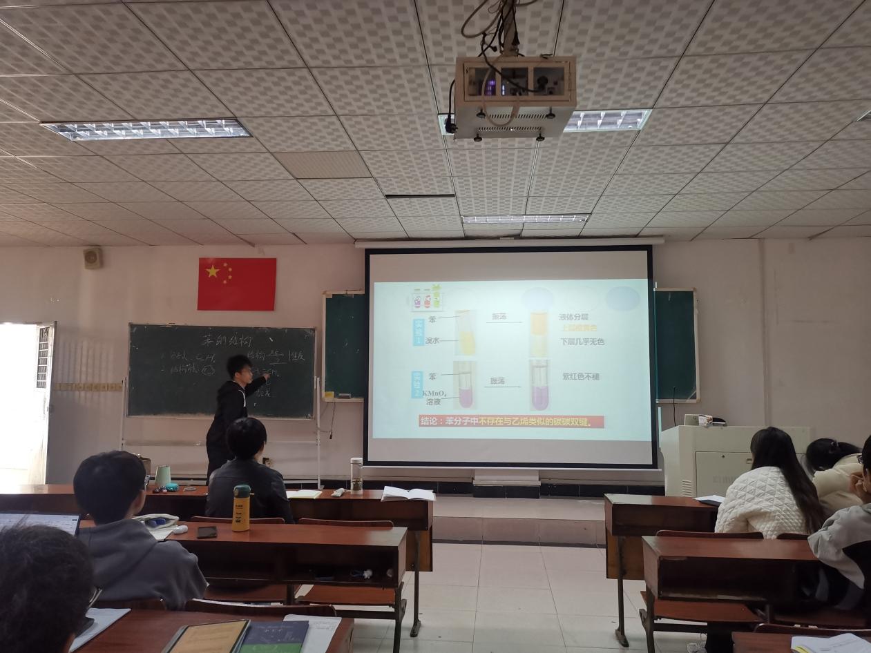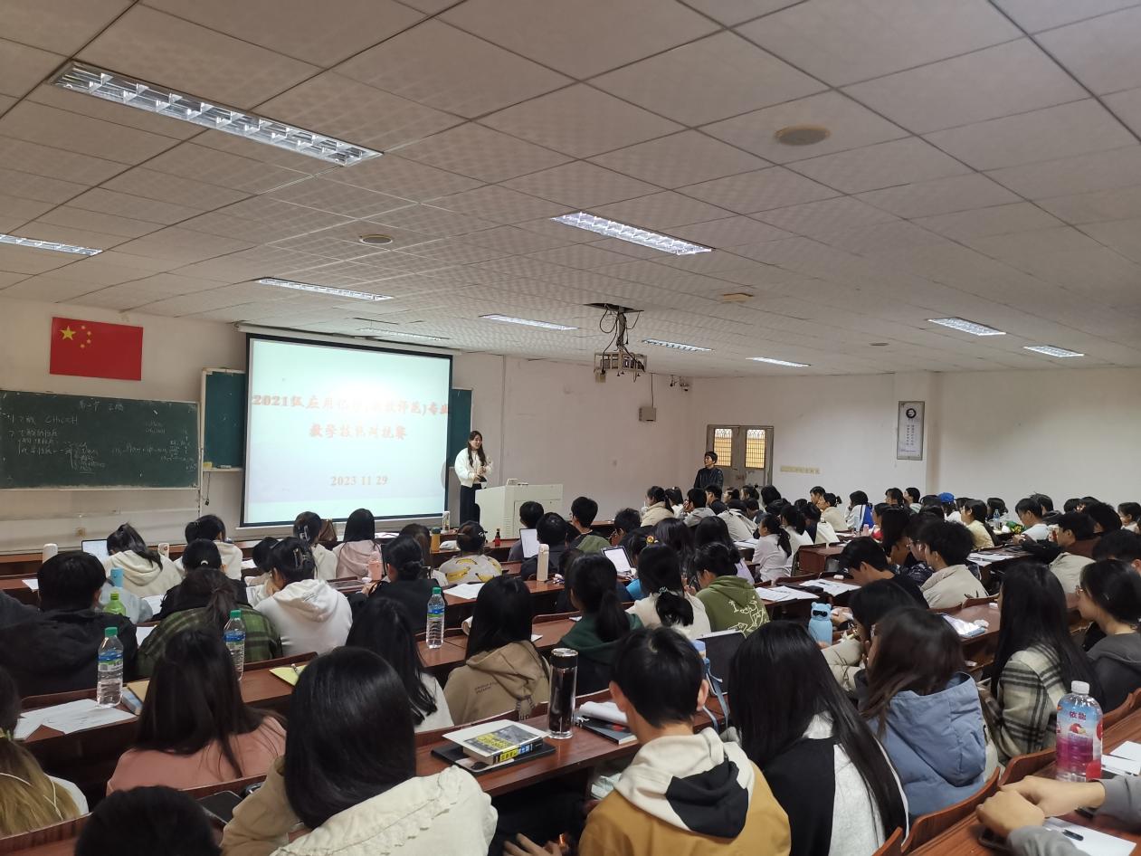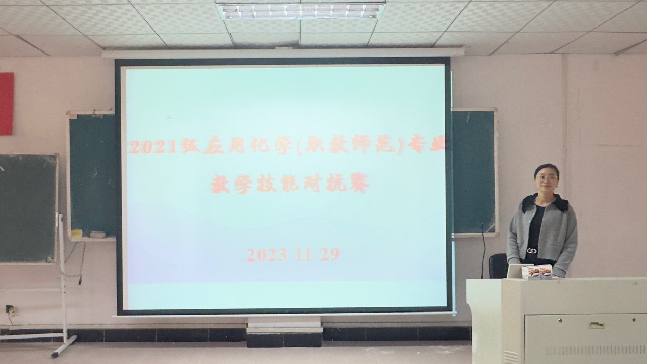 为加强学生教学技能训练,不断提高师范生的教学基本技能和教研能力,促进大学生教育理论与实践的有机结合,11月29日下午,8827太阳集团在9211教室举办了2021级应用化学(职教师范)专业教学技能对抗赛暨教学研习活动。本次活动由应用化学专业刘秀红系主任、孔芳芳老师、王静岚老师、江西省医药学校高倩老师(学院兼职实习指导教师)和应用化学专业应届毕业生刘乐同学共同担任评委,2020级应用化学和2021级应用化学专业同学到场观摩比赛、参与教研。