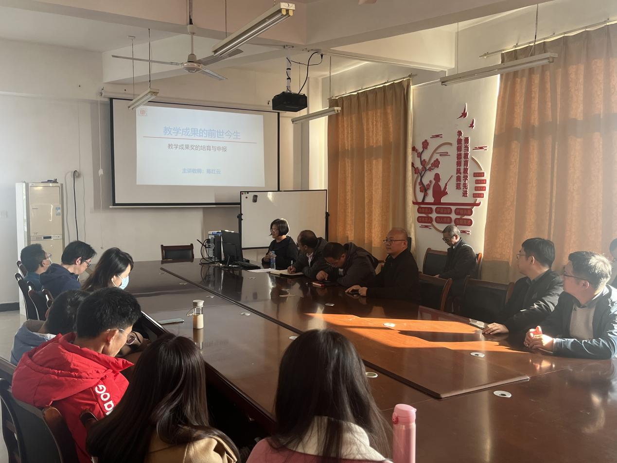 接下来,陈红云副教授做了以“教学成果的前世今生--教学成果奖的培育与申报”为主题的讲座。讲座中,陈老师围绕教学成果奖、教学成果奖选题与培育(前世)和教学成果奖申报、整合和总结(今生)等进行了系统阐述;并从个人申报教学成果奖的经验出发,重点讲述申报教学成果奖的要求及注意事项。