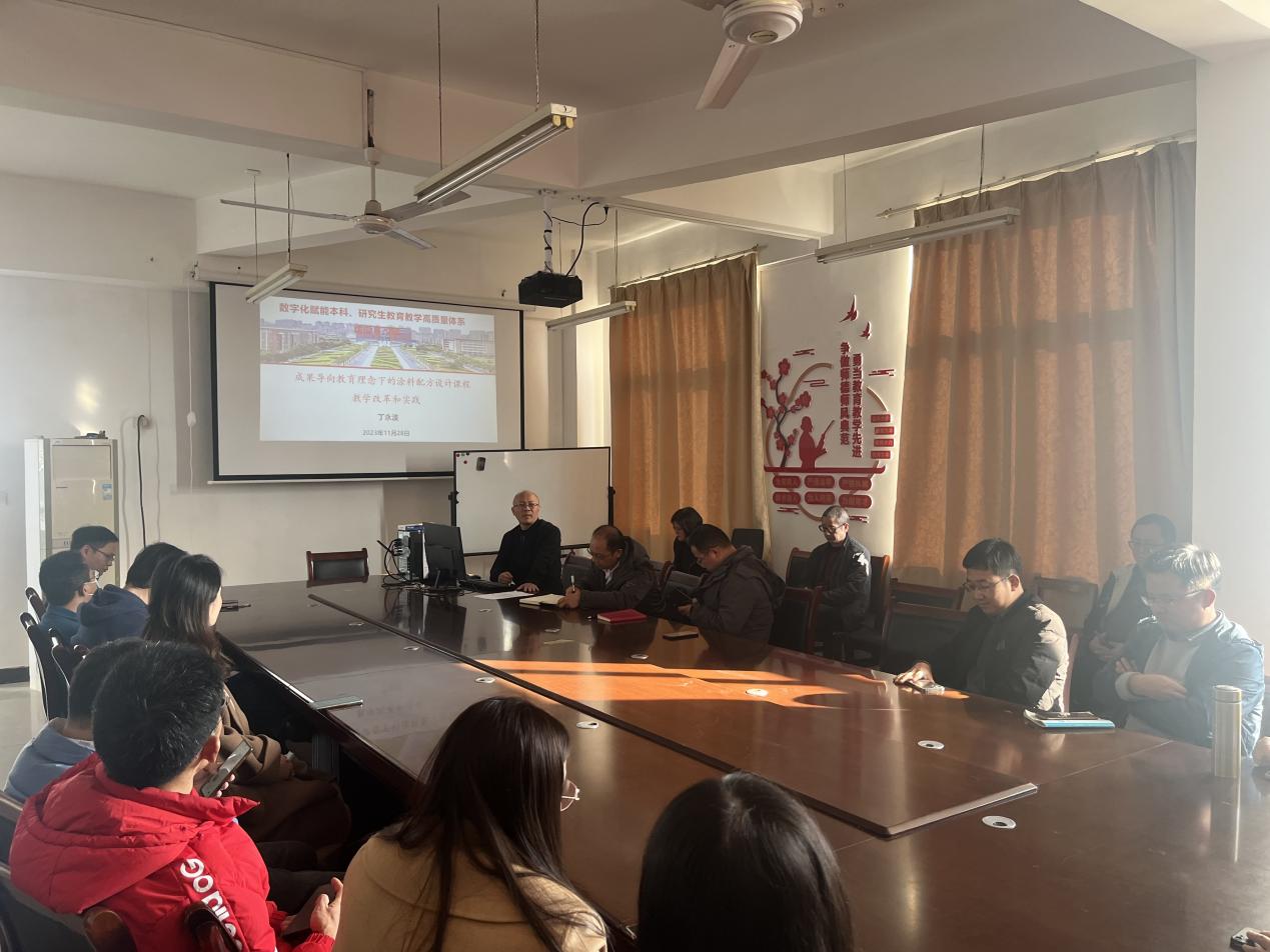 最后,丁永波副教授以“成果导向教育理念下的涂料配方设计课程教学改革和实践”为主题与大家一起交流。丁老师围绕成果导向教育(OBE)的核心要义及其课程设计框架进行阐述,并以《涂料配方设计》为例,对其课程教学目标设计、教学实施与指导、教学评价方法、课程目标达成度及持续改进等进行详细讲解。丁老师指出,从当前专业认证的实施情况来看,最大的薄弱之处是OBE理念在课程层面的落实环节,这一问题不解决,将会使整个OBE教学体系在很大程度上失去其建构基础和内在合理性。因此,丁永波副教授希望通过本次讲座,为一线教师打通教育教学改革“最后一公里”提供借鉴。