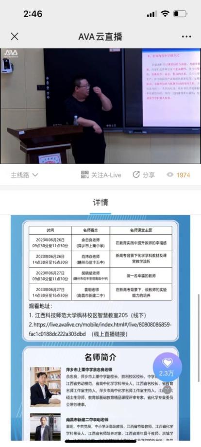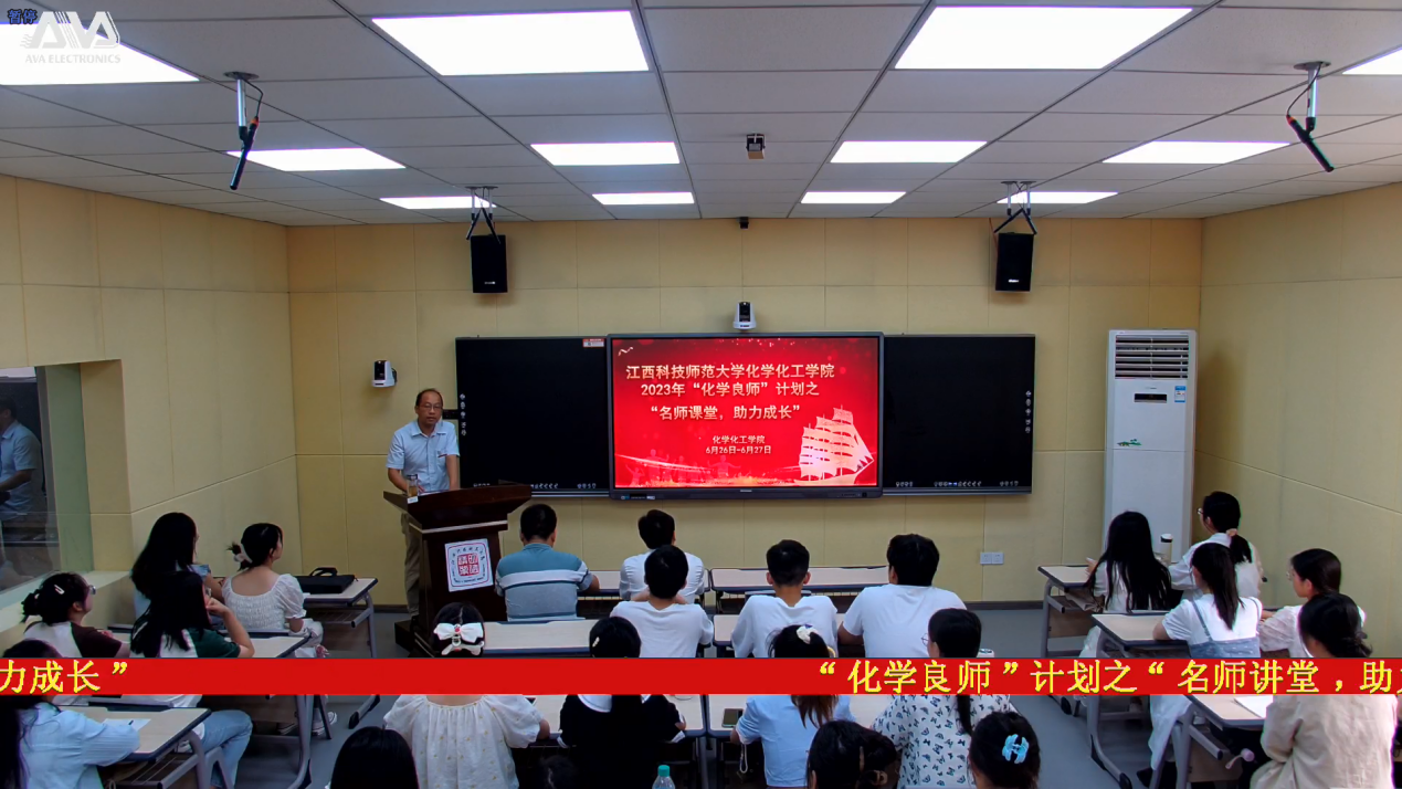 6月26日9点30分,学院在智慧教室205举行了本次“化学良师”计划之“名师课堂,助力成长”活动开幕式,学院副院长范丛斌教授,名师代表江西省劳动模范、萍乡市上栗中学余忠良副校长,2020级、2021级、2022级近500名师范生(含线上观看直播的学生)参加开幕式。开幕式由化学系主任吴亚芊博士主持,范丛斌副院长代表学院致辞,对四位名师热情参与“化学良师”计划表示衷心的感谢,要求同学们一定要认真记录,深刻体会名师们的授课内容,要以名师们为榜样,努力成为中学/中职化学骨干教师。