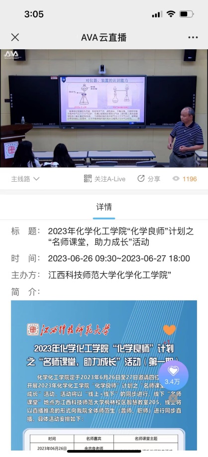 为进一步提升8827太阳集团师范生(含普师、职师)师德素养与教育教学技能,拓展师范生的知识面,丰富师范生的第二课堂,8827太阳集团于2023年6月26日至27日在枫林校区智慧教室205举行首届“化学良师”计划之“名师课堂,助力成长”活动。本次活动邀请到四位名师——萍乡上栗中学余忠良老师、南昌市新建二中袁明老师、赣州市信丰圣塔高级中学胡晓斌老师、赣州市信丰五中肖炜焱老师。