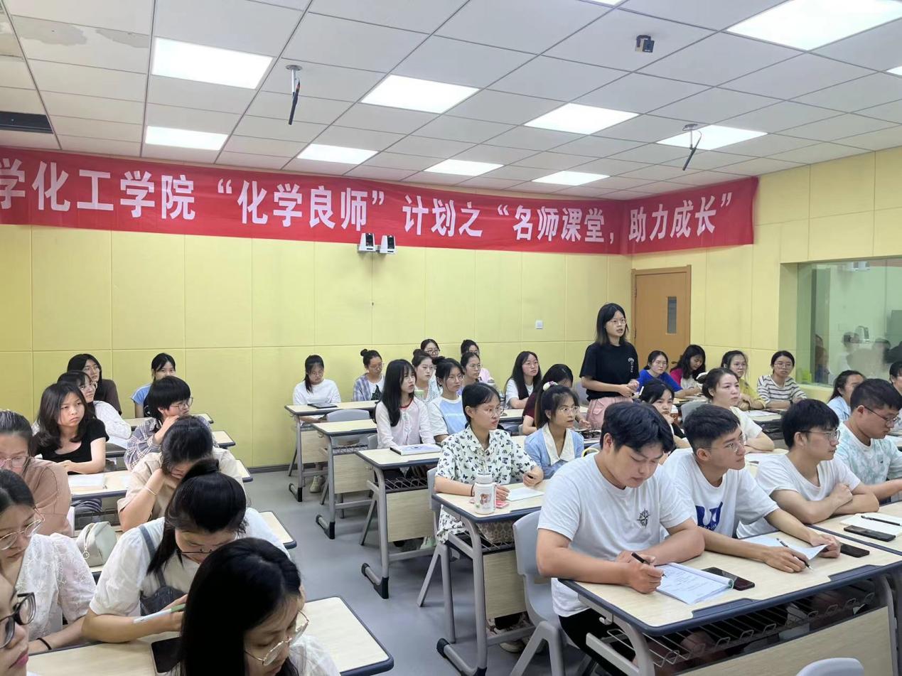 四位名师在本次活动中,分别从不同的角度,讲述自己从教多年的经验和感悟。余忠良老师以《在教育实践中提升教师的幸福感》为题讲述了一名教师如何在教育教学实践中提高自身的幸福感,鼓励师范生们争做一名有教育情怀的化学老师;肖炜焱老师以《新高考背景下化学学科教材及课堂教学浅析》为题,深入剖析了化学学科新教材,细心讲解如何掌控化学课堂;胡晓斌老师以《做一名幸福的教师》为题讲述了他的从教之路,并以自己的心得感悟,教授师范生如何做一名幸福的教师;袁明老师则以《在新高考背景下,浅谈教师实验能力的培养》为题,讲述了高中化学课程对于教师自身实验素养的要求,并以自身为例告诉师范生们如何提升自身的实验素养。同学们还就听讲座过程中的不解和教育见习、实习中的疑惑,现场向老师们请教,名师们一一解答,同学们收获很大。