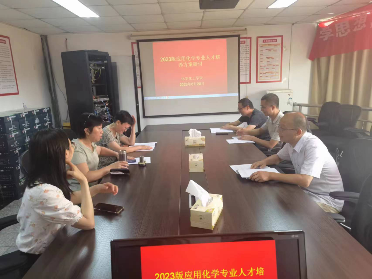 为了进一步提高应用化学专业人才培养方案修订的科学性, 2023年8月20日上午9点,学院在行政楼307会议室召开了2023级应用化学本科专业培养方案修订研讨会。会议由副院长范丛斌主持,采用线上线下同步进行,专业骨干教师参会。