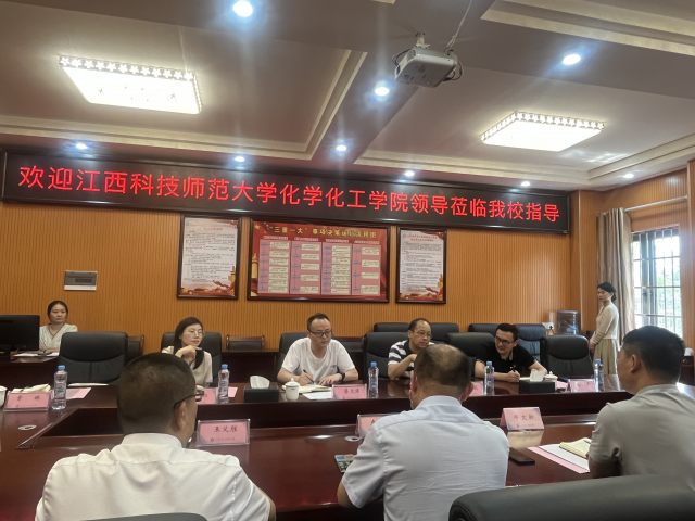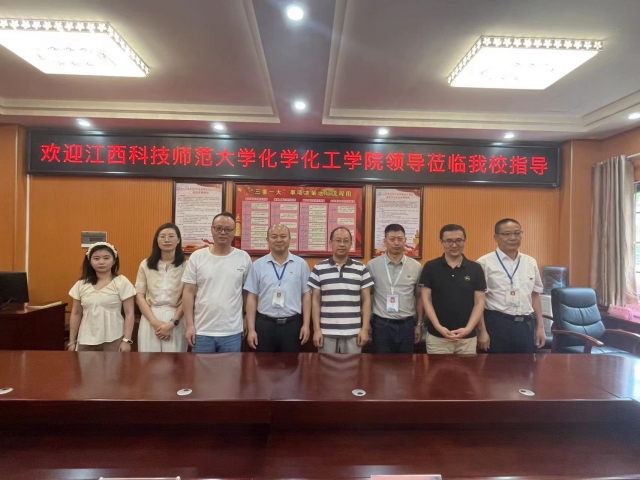 为加强学院与中职学校合作,提升职教师资培养能力,2023年6月12日上午,院党委副书记蔡文强、副院长范丛斌、教学办主任周志、应用化学系主任刘秀红和就业专干章琳一行五人赴江西省化学工业高级技工学校考察调研。江西省化学工业高级技工学校党委书记卢秋晓、副校长邓文新等陪同考察调研。