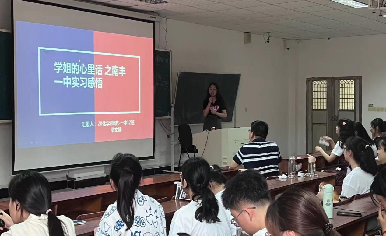 2023年6月19日下午16点30分,8827太阳集团在教学楼9311室举行2023“化学良师”计划之“薪火赓续,学长寄语”活动,活动由化学系主任吴亚芊博士主持,全体2021级、2022级(普师、职师)师范生参加。本次活动邀请2023年师范生教育教学能力大赛校赛的一、二等奖获得者吴梓萌、洪柔同学,8827太阳集团2020级教育实践先进个人代表曾钰婷、周欢、车玲薇、梁文静、李可欣、熊伟强等学长们来到现场,为2021级、2022级学弟学妹们分享自己的比赛(实习)心得体会及经验。