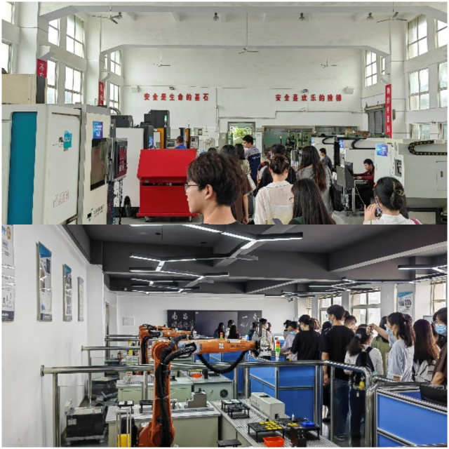 南昌市第一中等专业学校给同学们安排了丰富的见习内容,在机电部实训教室,大家参观了精密仪器加工车间、工业机器人实训中心、VR模拟仿真实训中心等,期间还与准备参加国家级竞赛的学生进行了交流,让同学们真实感受到理论学习与动手实践的内在联系。