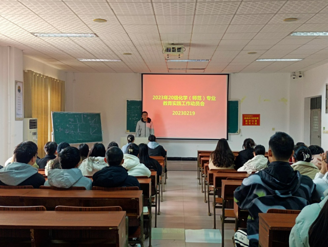 2023年2月19日,化学系系主任吴亚芊博士组织2020级化学师范专业同学在9号楼9115教室召开了2023年教育实践工作动员会。动员会上,吴老师详细介绍了承担此次教育实习任务的南昌十中经开校区(江西省重点中学)、新建一中(南昌市重点中学)、崇仁一中(江西省重点中学)和南丰一中(江西省重点中学)等四家实习基地的基本情况。随后他着重强调,教育实习是高校人才培养的一个重要环节,是人培方案中的综合性实践教学环节,是学生对所学知识和技能进行实践运用、总结和深化的重要过程。实习期间同学们要认真履行岗位职责,努力完成各项教育实践任务,认真做好实习过程中的每一件工作,如需请假须经带队教师或实习单位领导的批准。最后,吴老师对同学们提出了几点要求:第一,要严格遵守实习基地的规章制度及实习生管理规定,注意实习安全;第二,要尊师重教,礼貌待人,体现科师大人的精神风貌、维护学校声誉;第三,要谦虚求教,认真学习,掌握更多一线 “实战”经验,助力成长,增强自己的竞争力。