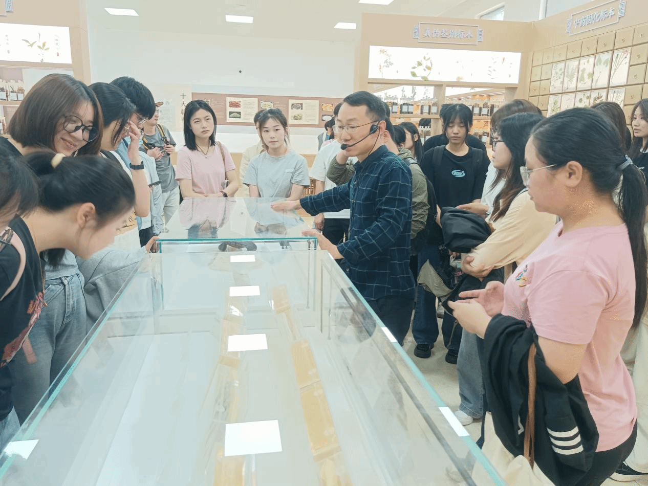 最后,余卫强带领大家参观了中药标本馆,详细介绍药材的产地、采集时节、炮制工艺、在中医药领域的独特药用价值等,激发了同学们对中医药的兴趣,让同学们近距离感受到了中医药文化的博大精深,拓宽了同学们的专业视野,点燃了对药物化学知识探索的热情。