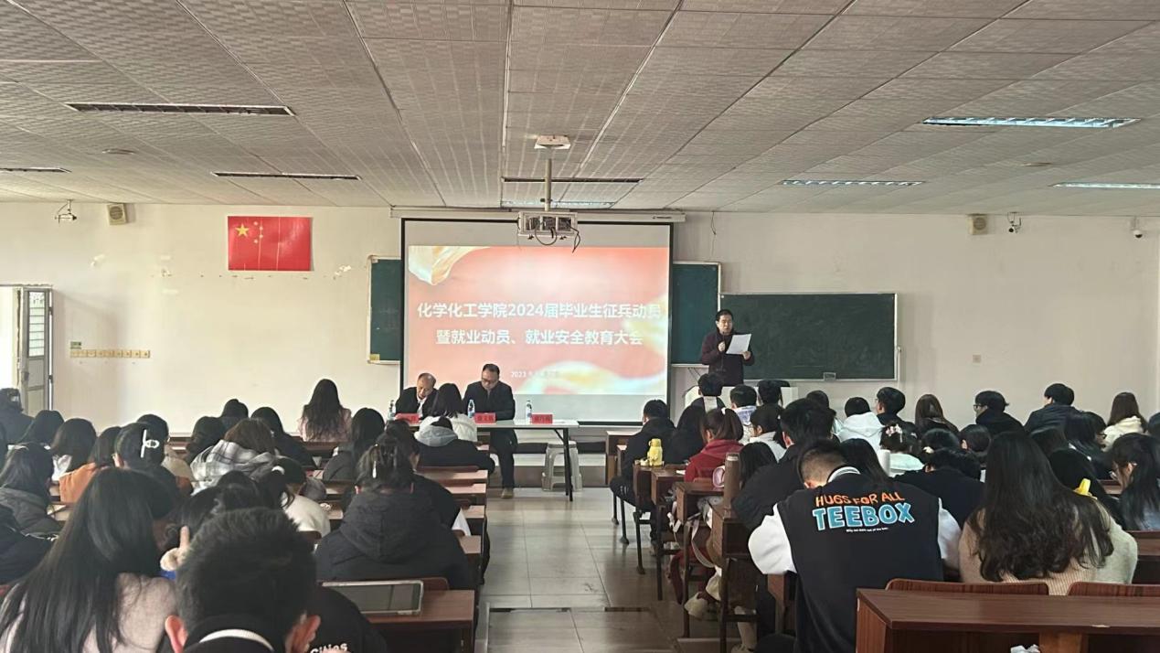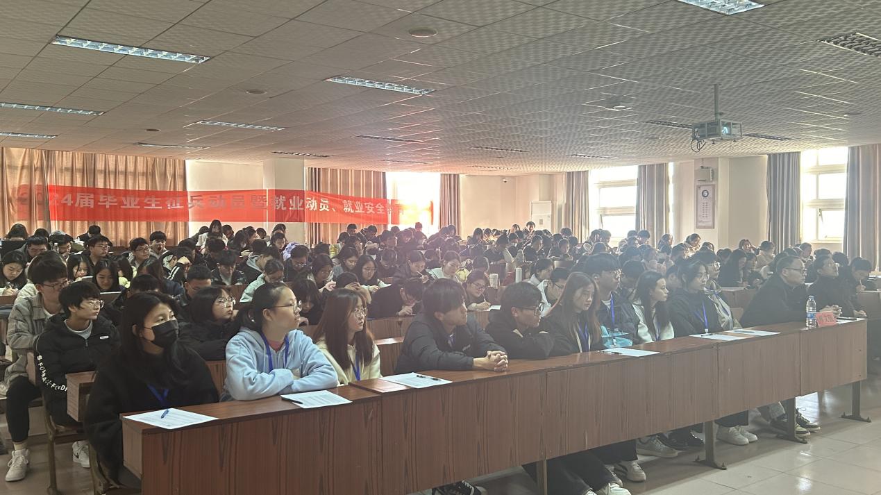为深入贯彻落实习近平总书记关于加强全民国防教育的重要讲话和重要指示精神,践行习近平强军思想,教育引导我院学子携笔从戎、积极投身国防建设和树立正确的就业观念,助力提升毕业生就业质量。2023年12月5日下午三点在九栋教学楼9311教室,8827太阳集团隆重举行了2024届毕业生征兵动员暨就业动员、就业安全教育大会。8827太阳集团党委副书记蔡文强、学院办公室主任涂雅怡、学工办主任谢巧燕、学院专职辅导员许乐群、毕业班班主任以及退役复学学生代表乔怡昀应邀出席了会议,本次会议由谢巧燕老师主持,学院全体2024届毕业生到会认真聆听了会议。