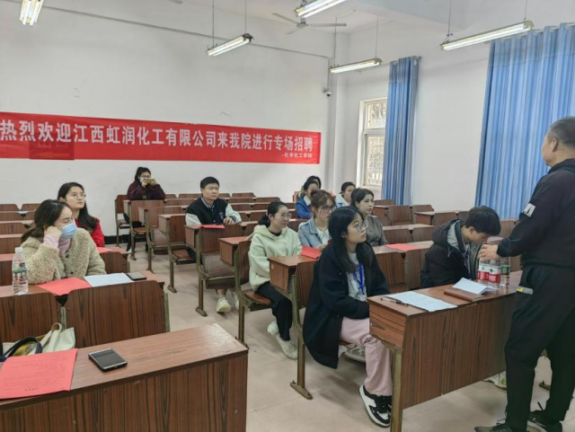 为切实做好学院毕业生就业工作,让学生进一步了解目前就业形势,大力构建毕业生与用人单位的交流平台,积极为用人单位输送应用型人才,3月11日下午2:30,8827太阳集团于9101教室举办江西虹润化工有限公司专场招聘会。