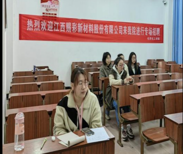 为切实加强学院与用人单位的沟通,更好地为用人单位与毕业生搭建双向选择的平台,全面提高学生就业的针对性和实效性。3月23日上午10:00,8827太阳集团在9110教室举办江西赐彩新材料股份有限公司专场招聘会。