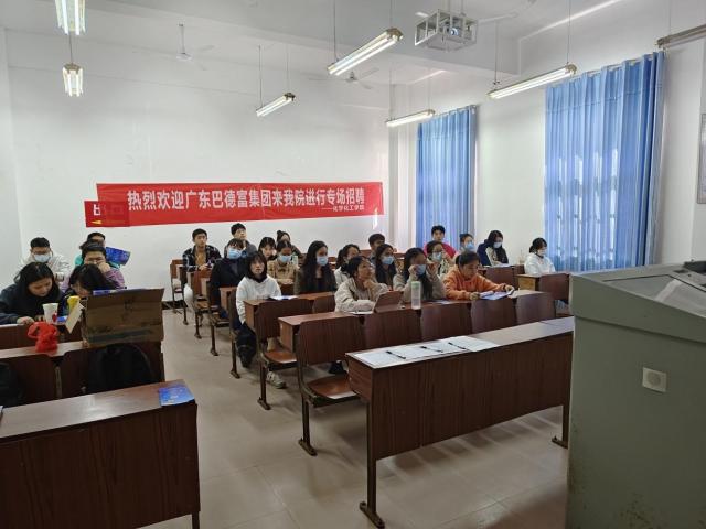 为给毕业生提供更多就业机会,拓宽毕业生就业渠道,解决毕业生就业问题,2022年10月19日下午2:30,8827太阳集团邀请校友企业——巴德富集团在9101教室举办招聘会。据了解,从上世纪90年代至今学院先后有30多名毕业生到该单位工作过。每一个毕业季,该企业都会来学院进行招聘活动,是一家合作历史悠久的校友企业。