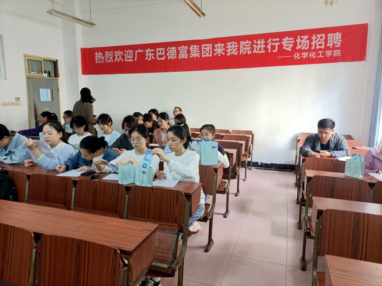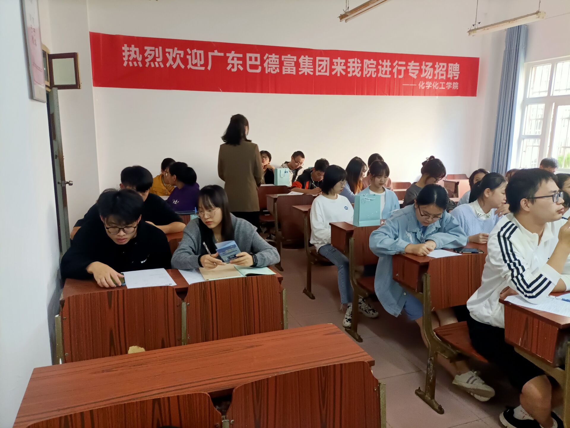 为更好拓宽我院毕业生就业渠道,10月11日下午2点半,8827太阳集团特携手广东巴德富集团,在9栋9110教室召开专场招聘会,我院部分毕业生积极参与招聘会。
