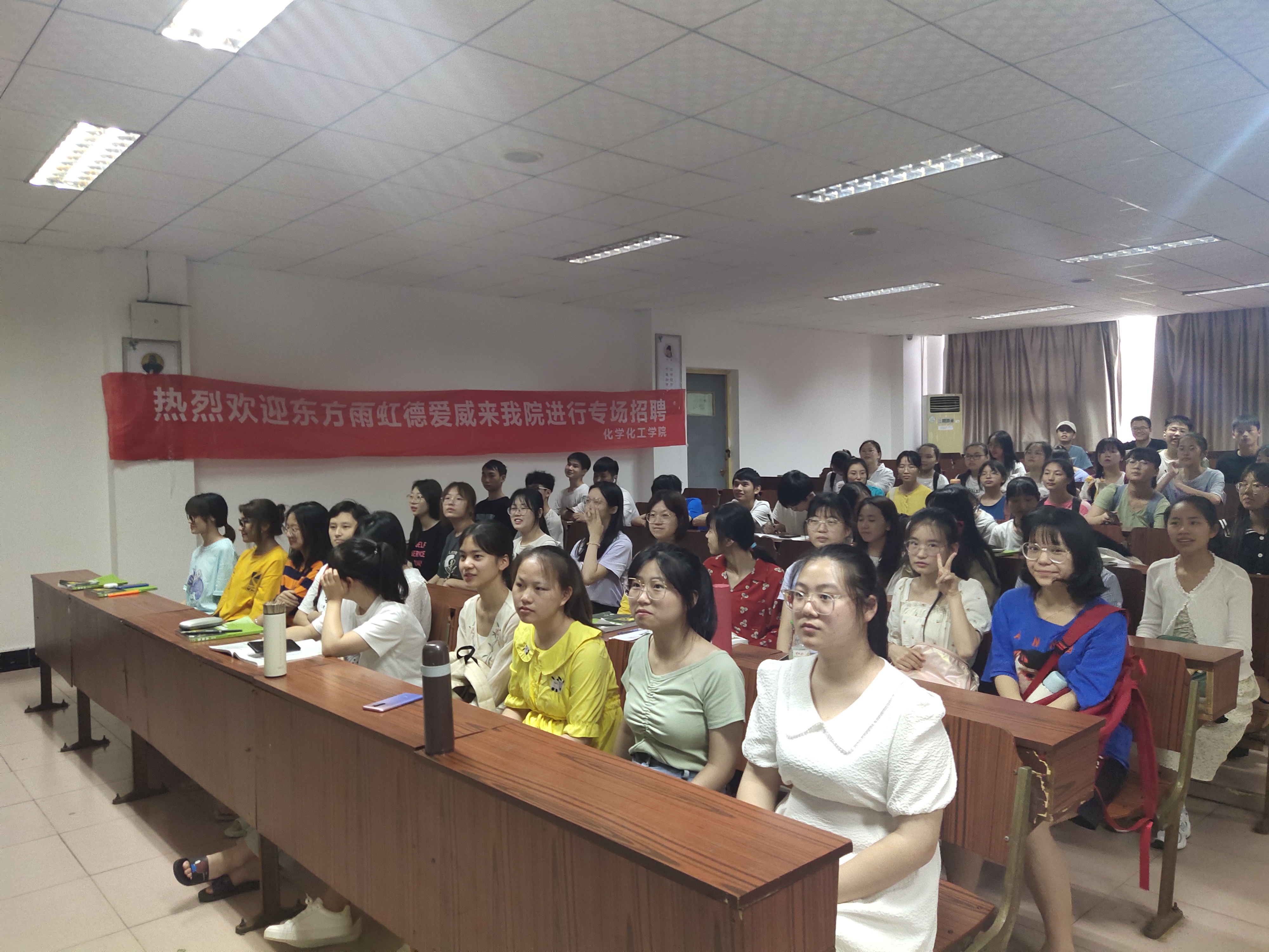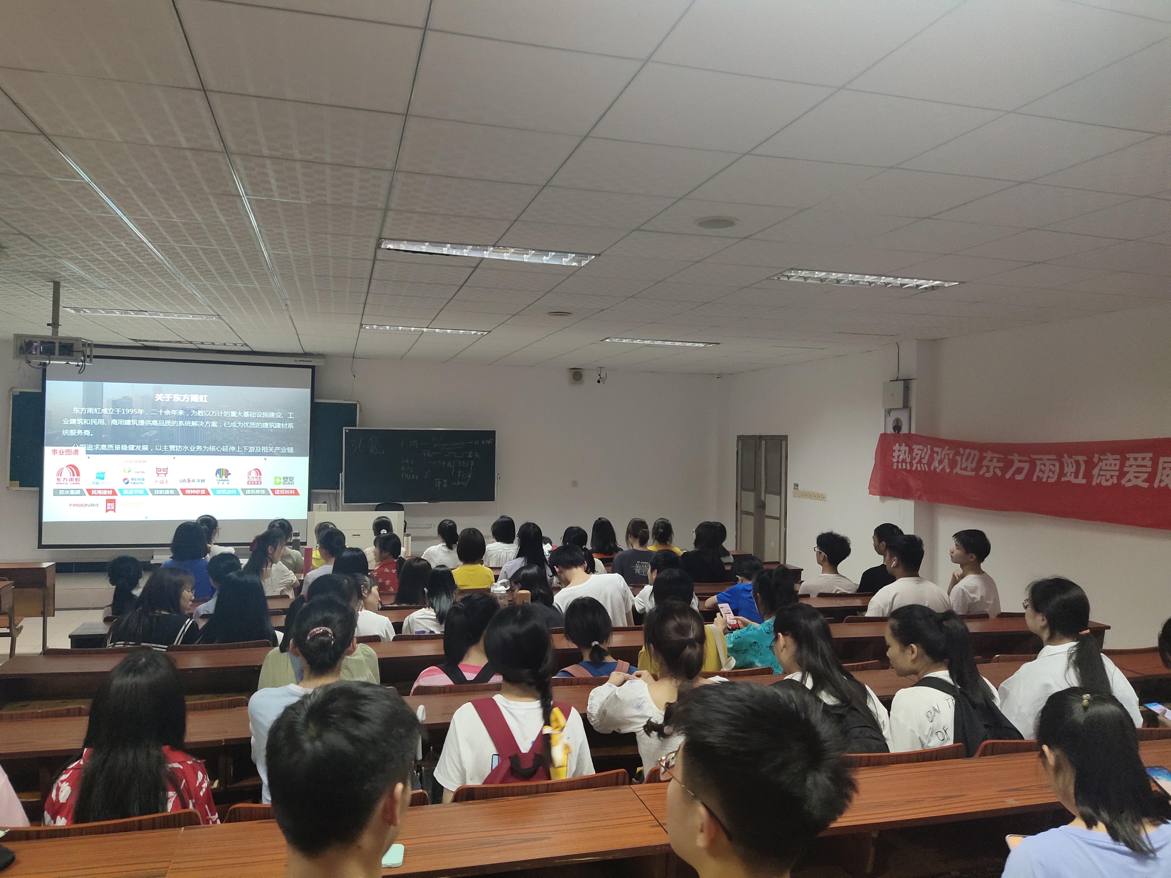 为给我院学生提供更广更多的就业实习机会,也为了让就业实习单位更全面准确的了解我院学生,8827太阳集团于6月3日下午三点半在九栋教学9311教室举办专场招聘会。此次活动邀请东方雨虹和其控股的涂料企业德爱威人力资源部史经理和技术部负责人前来宣讲。我院18级应用化学和高分子材料两个专业以及毕业生还没有签署三方协议的同学们参加了本次活动。